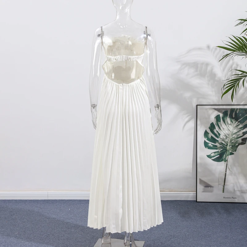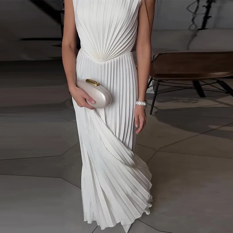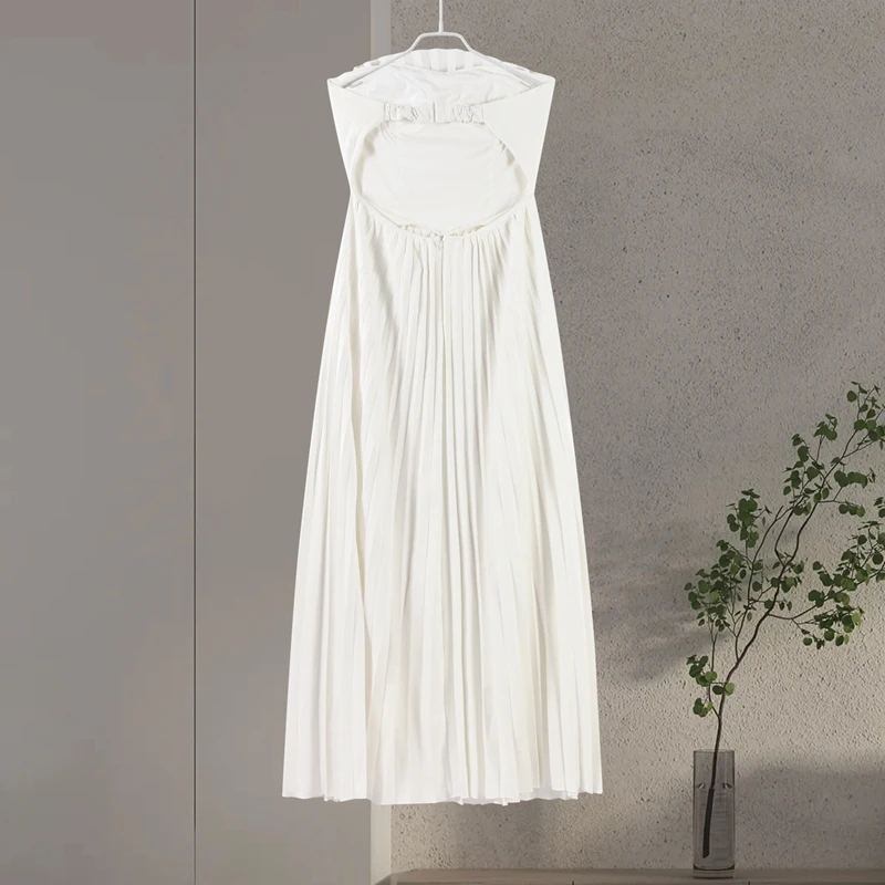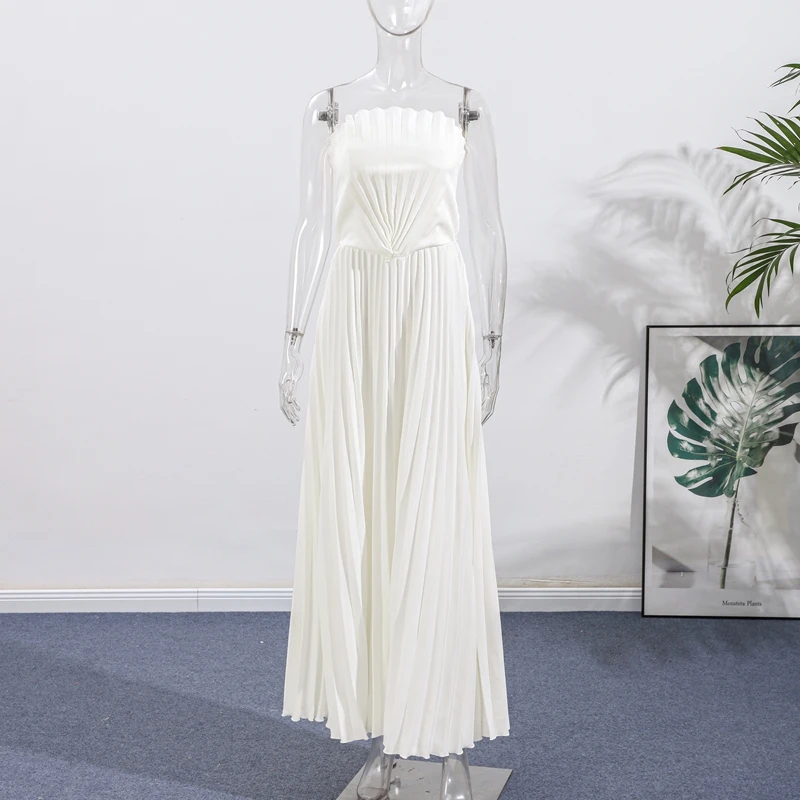 Elegant Solid Pleated off Shoulder Long Dresses for Women Chic Sleeveless Backless Female Maxi Dress Summer New Beach Party Robe