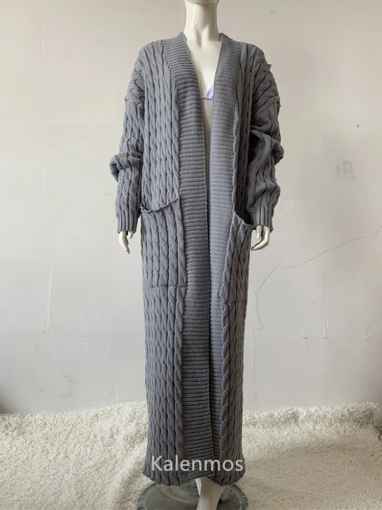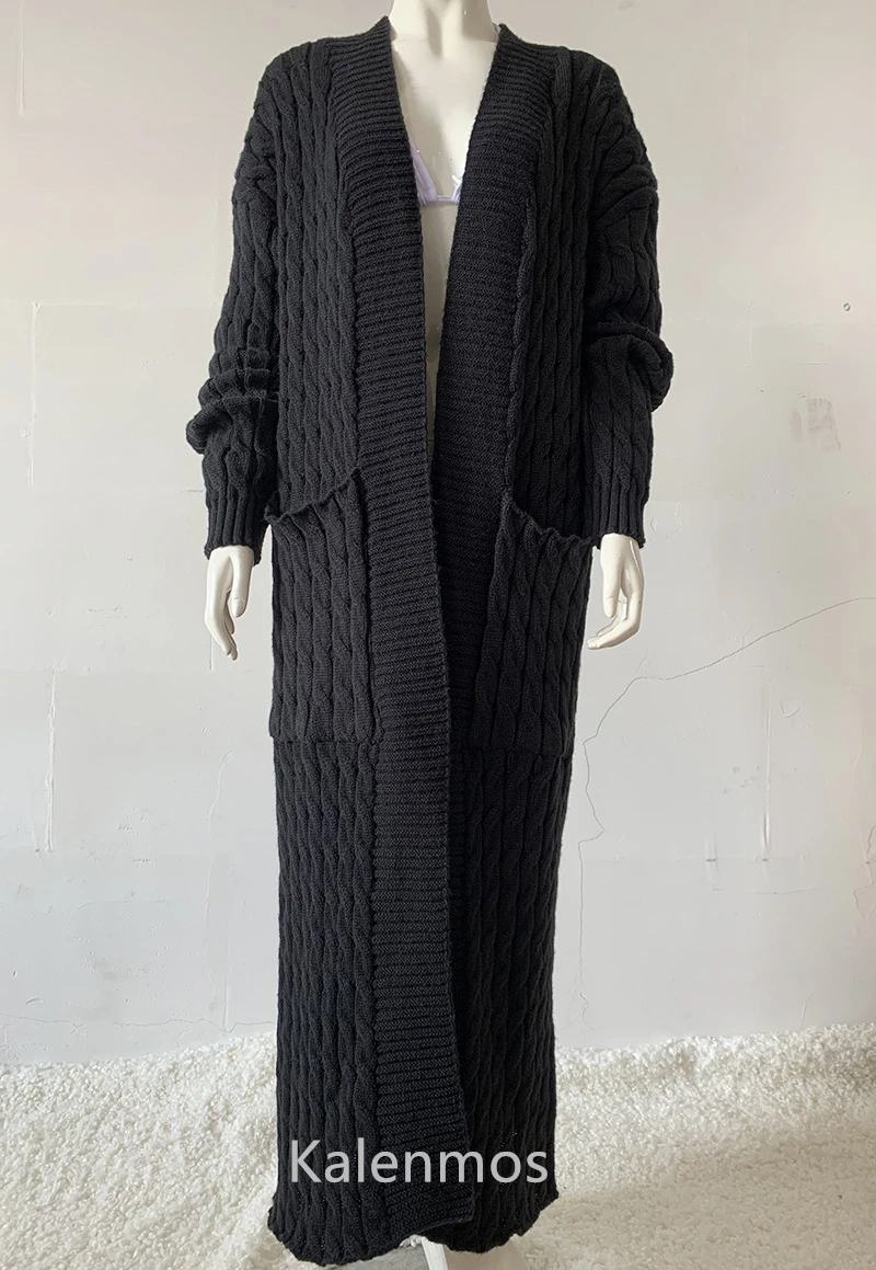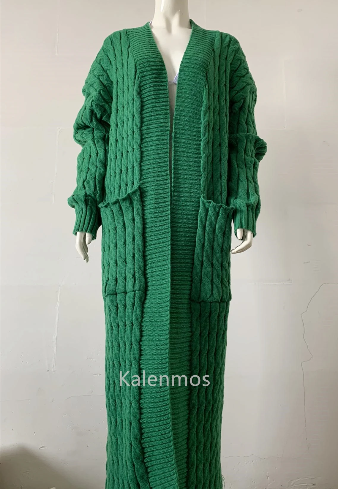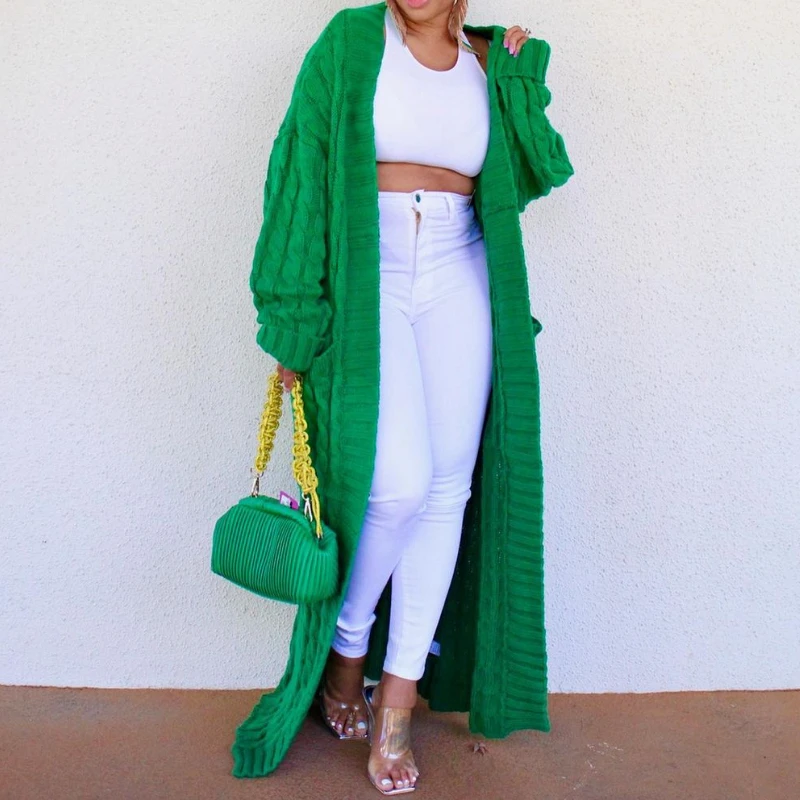 Long Cardigan Women Jacket Autumn Kintted Winter Green Crochet Loose Long Sleeve Spring Sweater Warm Jumper Causal Cardigans