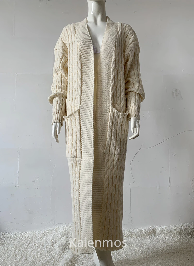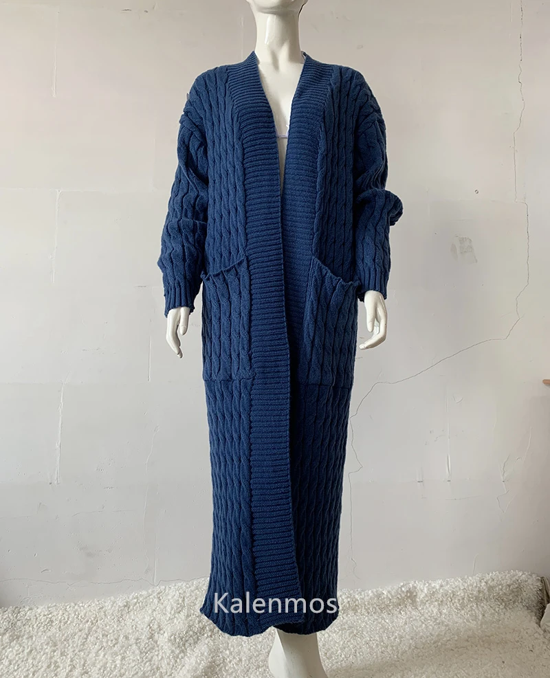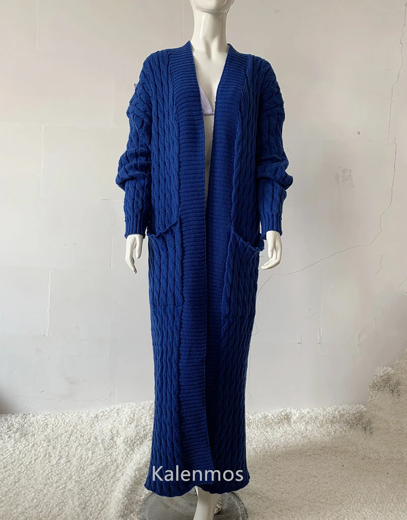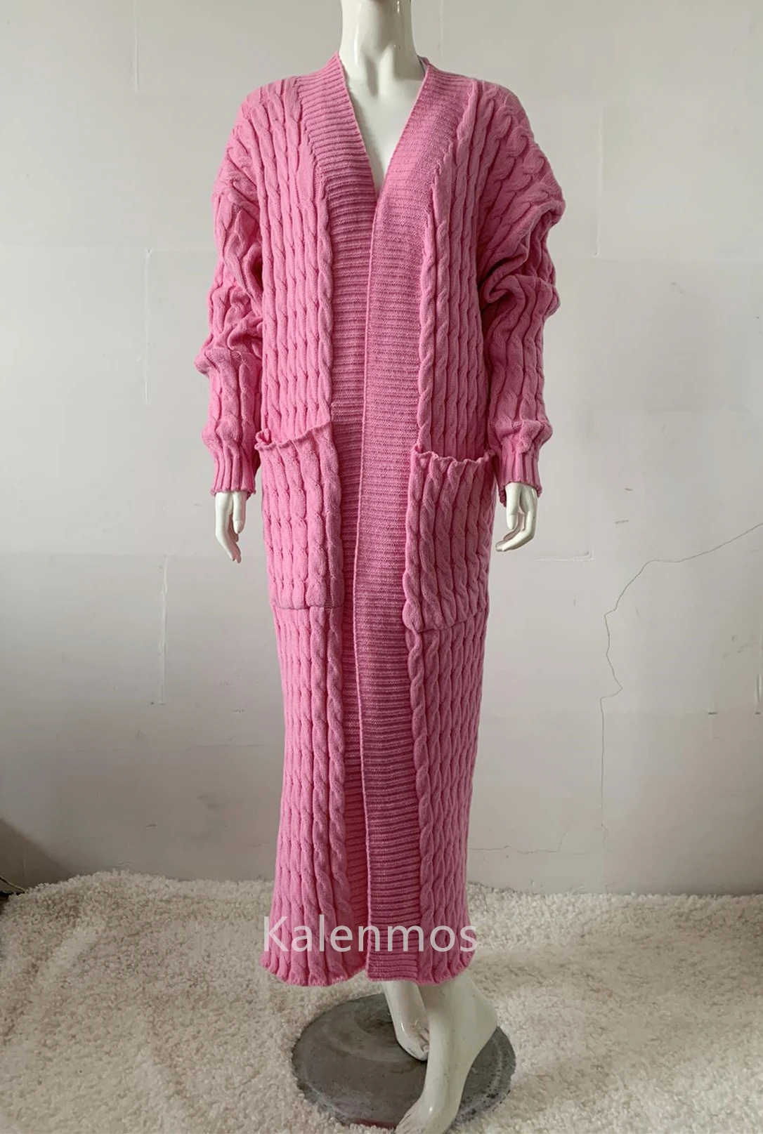 Long Cardigan Women Jacket Autumn Kintted Winter Green Crochet Loose Long Sleeve Spring Sweater Warm Jumper Causal Cardigans