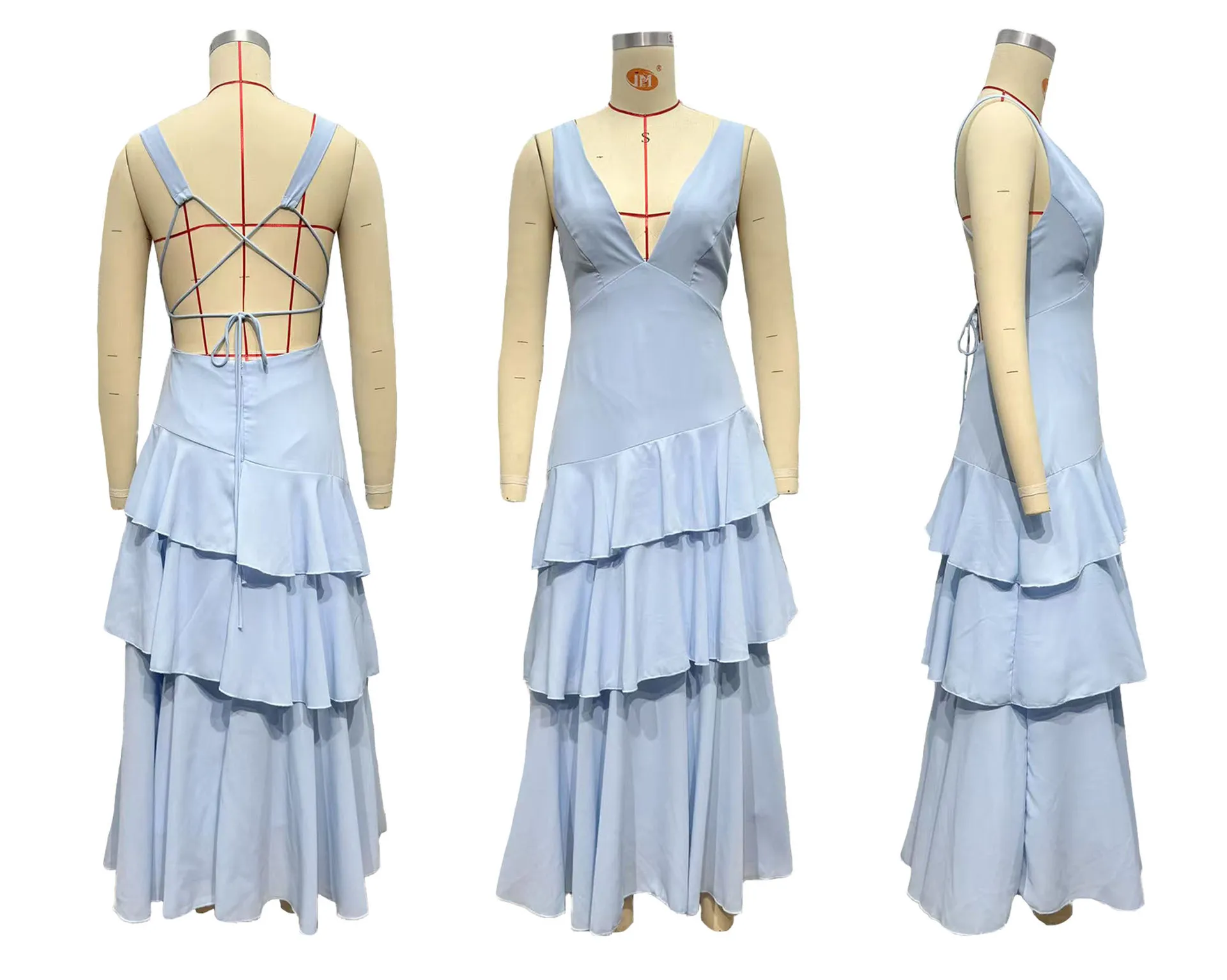 Elegant Summer French-Style Cake Dress for Girls with Sleeveless V-Neck Design