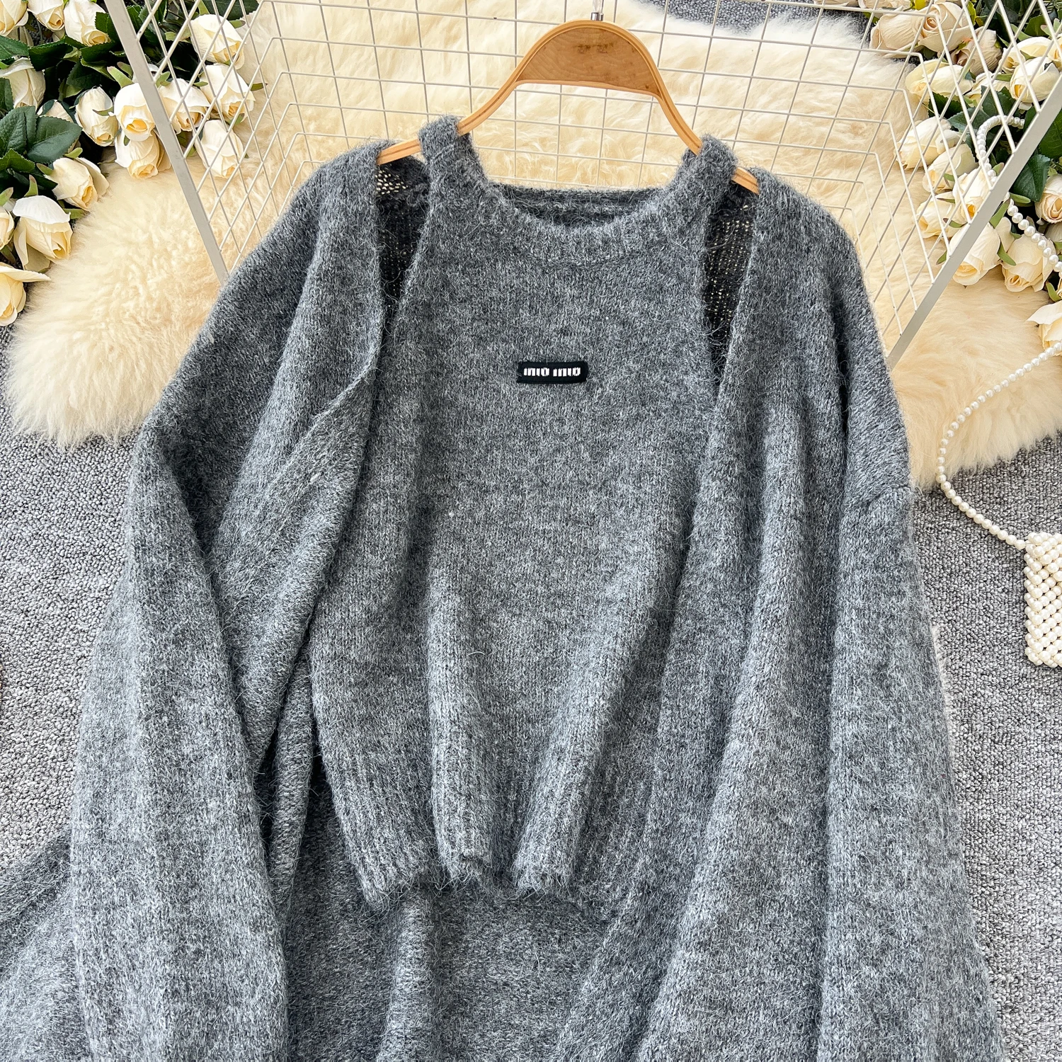 SINGREINY Fashion Solid Cashmere Sweater Long Sleeves Loose Warm Cardigan+Sleeveless Knitting Tank Top Winter Gentle Casual Tops