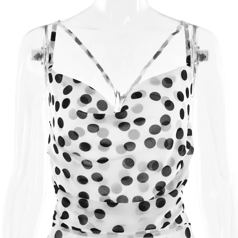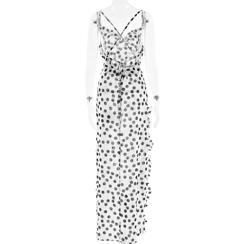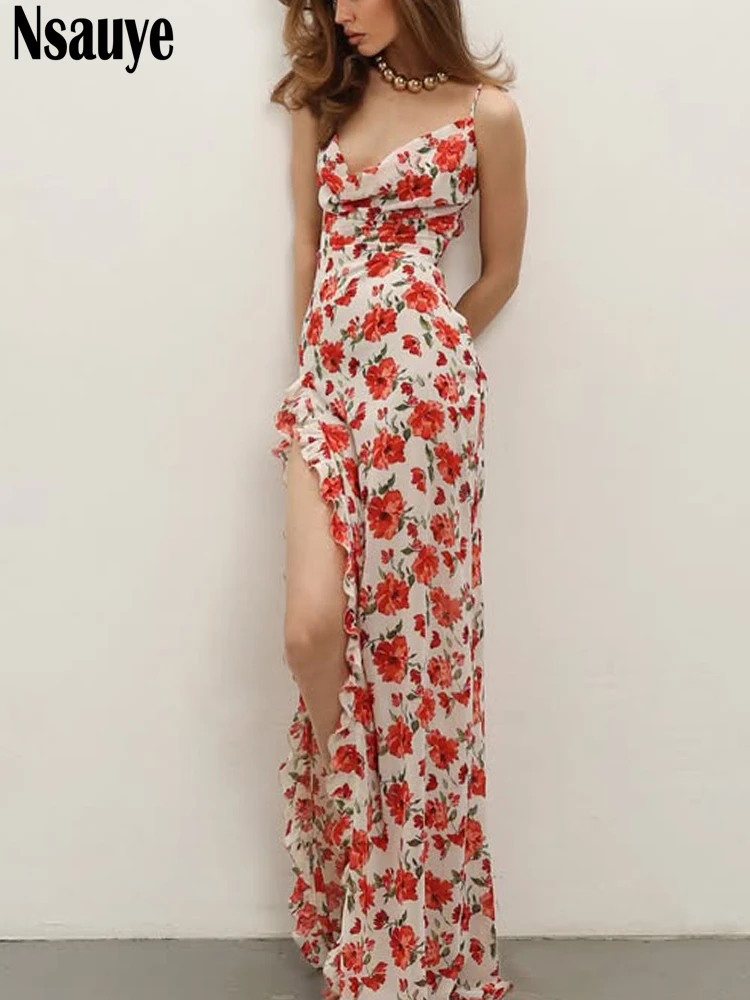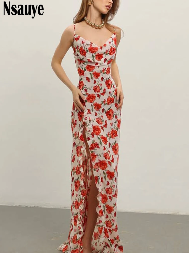 Sophisticated Women's Evening Dress with Ruffles and Polka Dot Floral Print for Summer 2025 Party and Beach Events