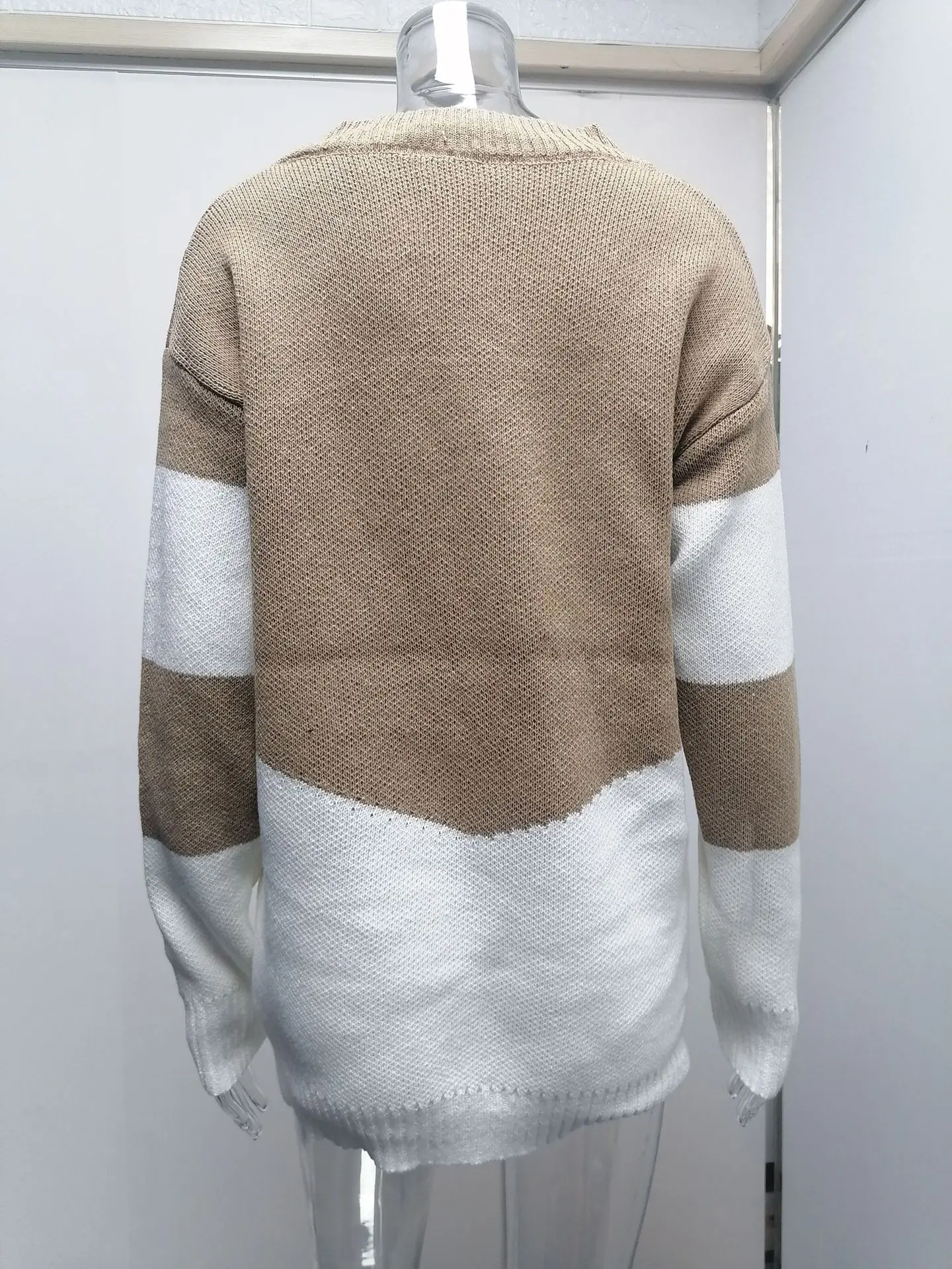 Women'S Sweater Autumn Fashion Colorblock Long Sleeve V Neck Casual Daily Pullover Loose New Knit Sweater Womens Clothing